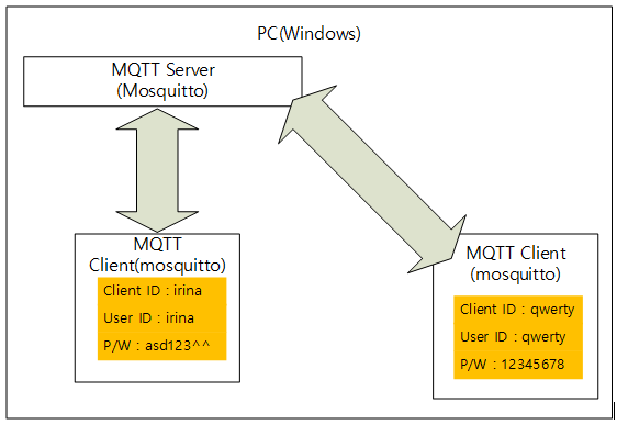 제가 설명하고 하는 내용은 MQTT Broker(이하 내용에는 MQTT Server라 칭한다)에서 User id/Clinet id/password 를 등록한 상태에서 어떻게 통신이 되는지를 설명하려고 해요