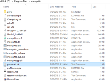 저는 password.txt 파일을 생성했고, 해당 파일은 Mosquitto가 설치 되어 있는 곳에 넣어놨어요.