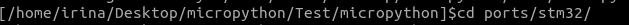 5. Pyboard(STM32F405를 동작하기 위해 아래의 커맨드를 입력해서 ports/stm32 폴더로 이동해요.