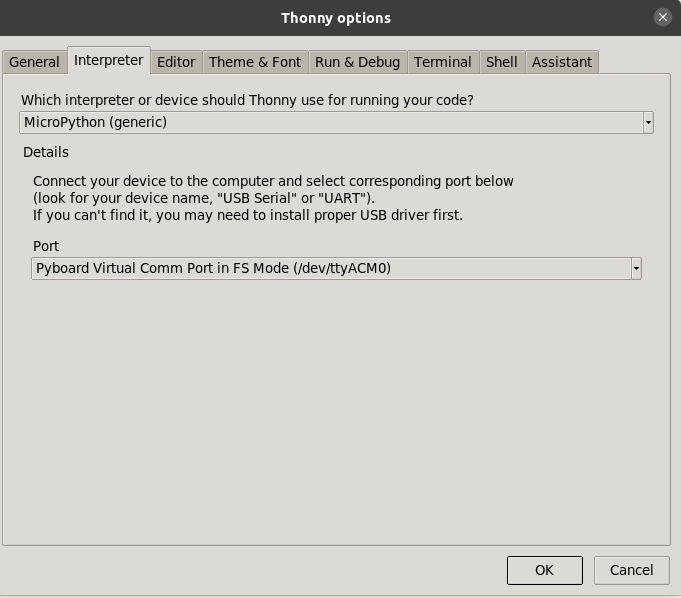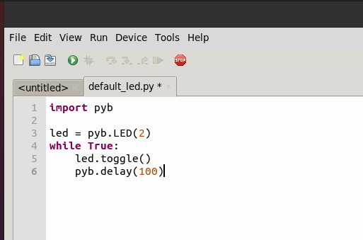 사용하고자하는 micropython 코드를 선택하고 Pyboard의 Port를 선택합니다.