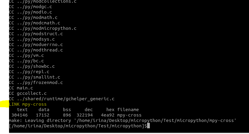 실행을 하게 되면 아래와 같이 mpy-cross가 생성되어있어요.