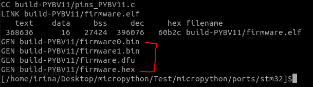 즉, 컴파일을 할때 BOARD=PYBV11를 사용했기 때문에 build-PYBV11 의 폴더가 만들어집니다.
