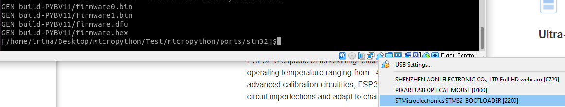 전 가상머신으로 돌리고 있기때문에 USB setting에 가면 STM32 BOOTLOADER 가 있어 체크해줍니다.