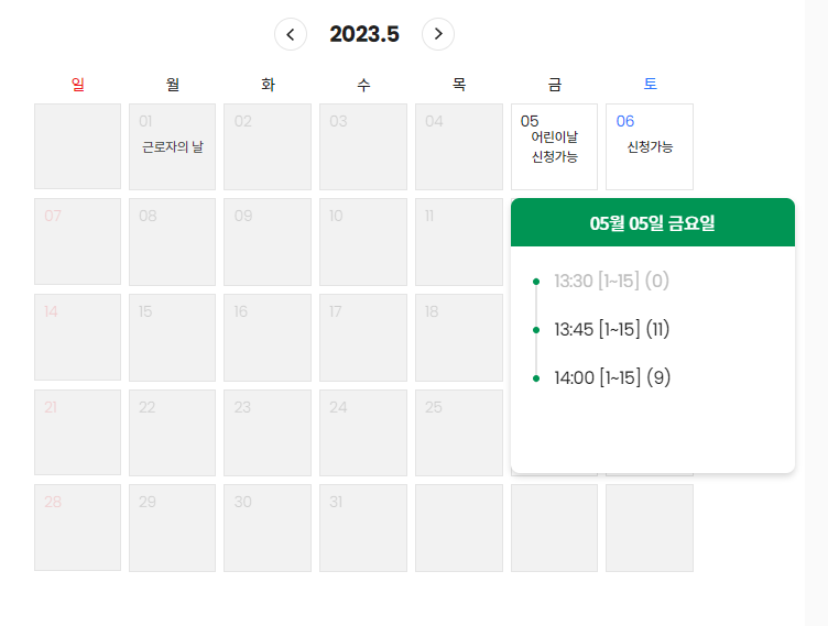 실제 신청가능한 날짜에 들어가보면 (#)가 신청가능한 인원수더라고요..