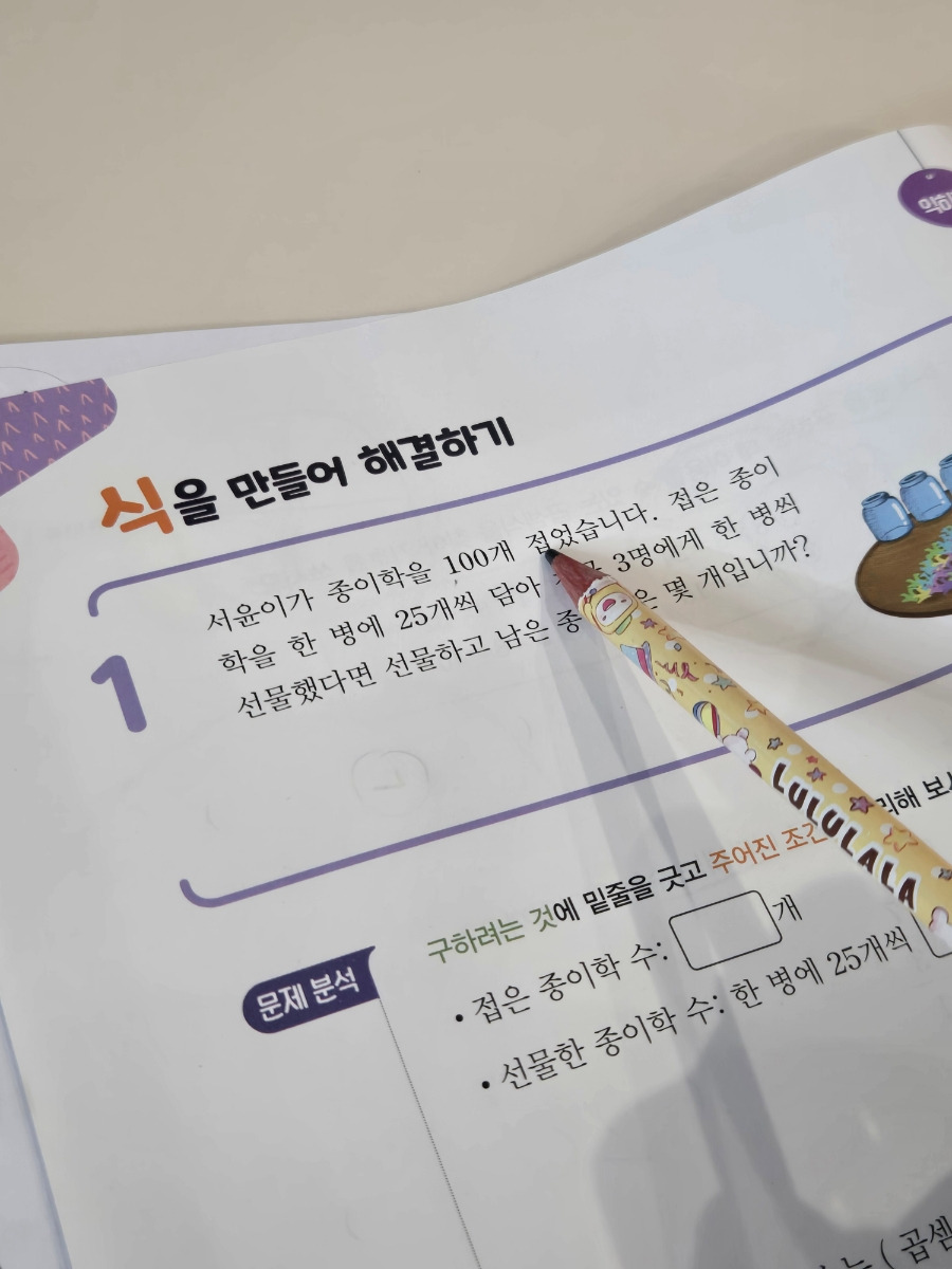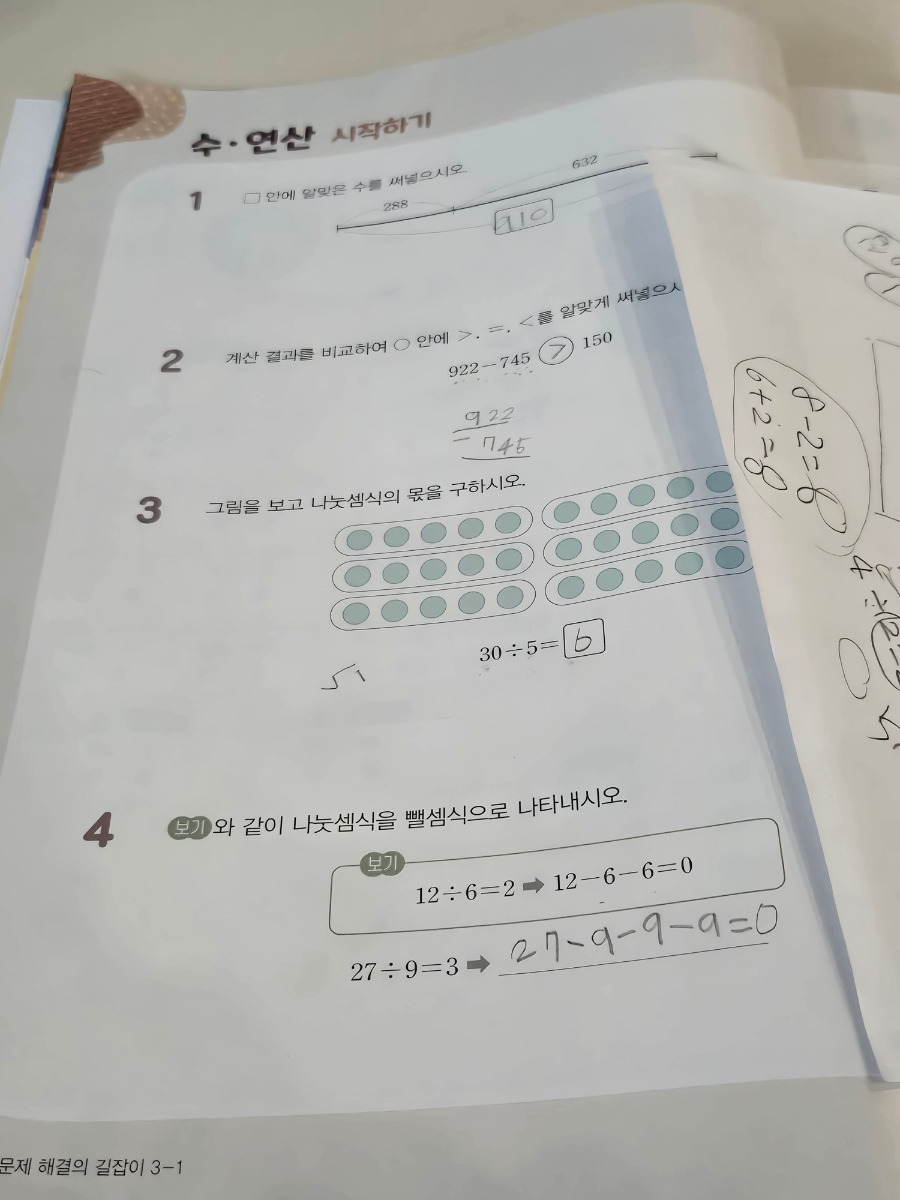 저는 아이가 되도록이면 그림을 그려서하고, 같은 문제를 다른방법으로 해결해보려고해요