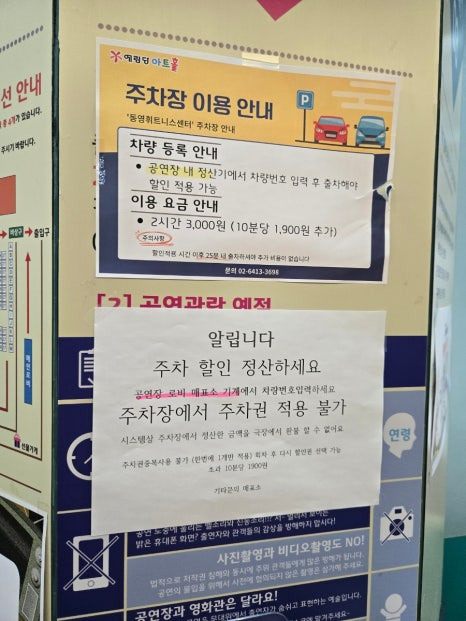 주차 할인은 공연장로비 매표소에 가셔서 차량번호를 눌러야해요~! 주차장에서는 절대 주차권 적용안된다는것!!