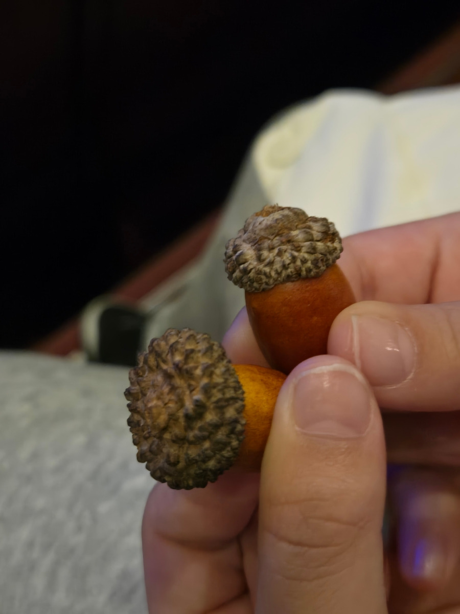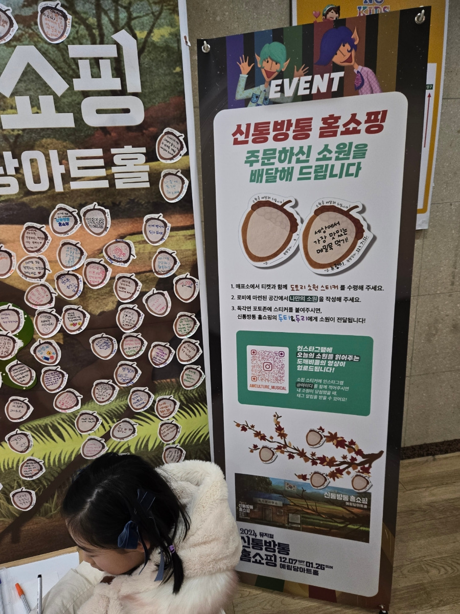 아이와 각각 하나의 도토리를 챙겨서 공연장에 들어왔어요